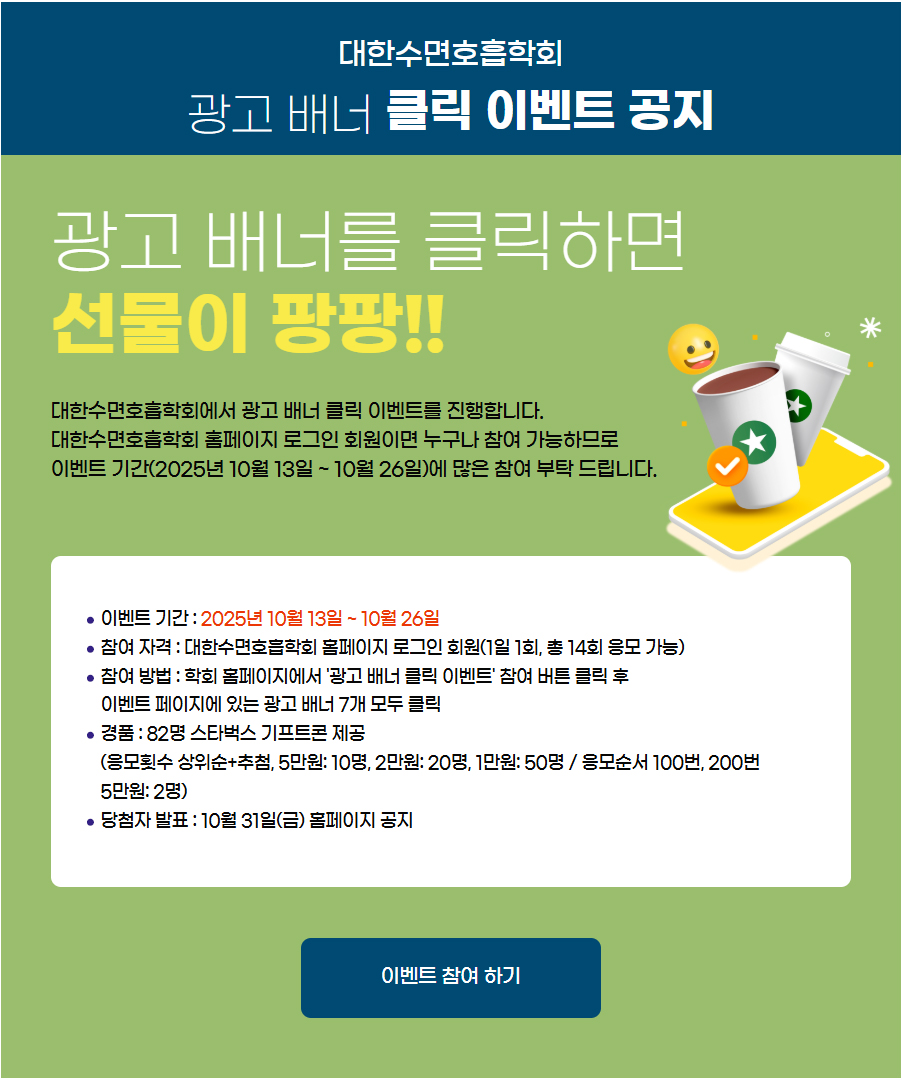 대한수면호흡학회 광고 배너 클릭 이벤트 공지 |